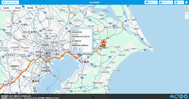 DoCoMAP allows you to display and manage vehicle locations on the familiar Google Maps interface. You can also directly utilize Google Maps features such as traffic information and Street View.